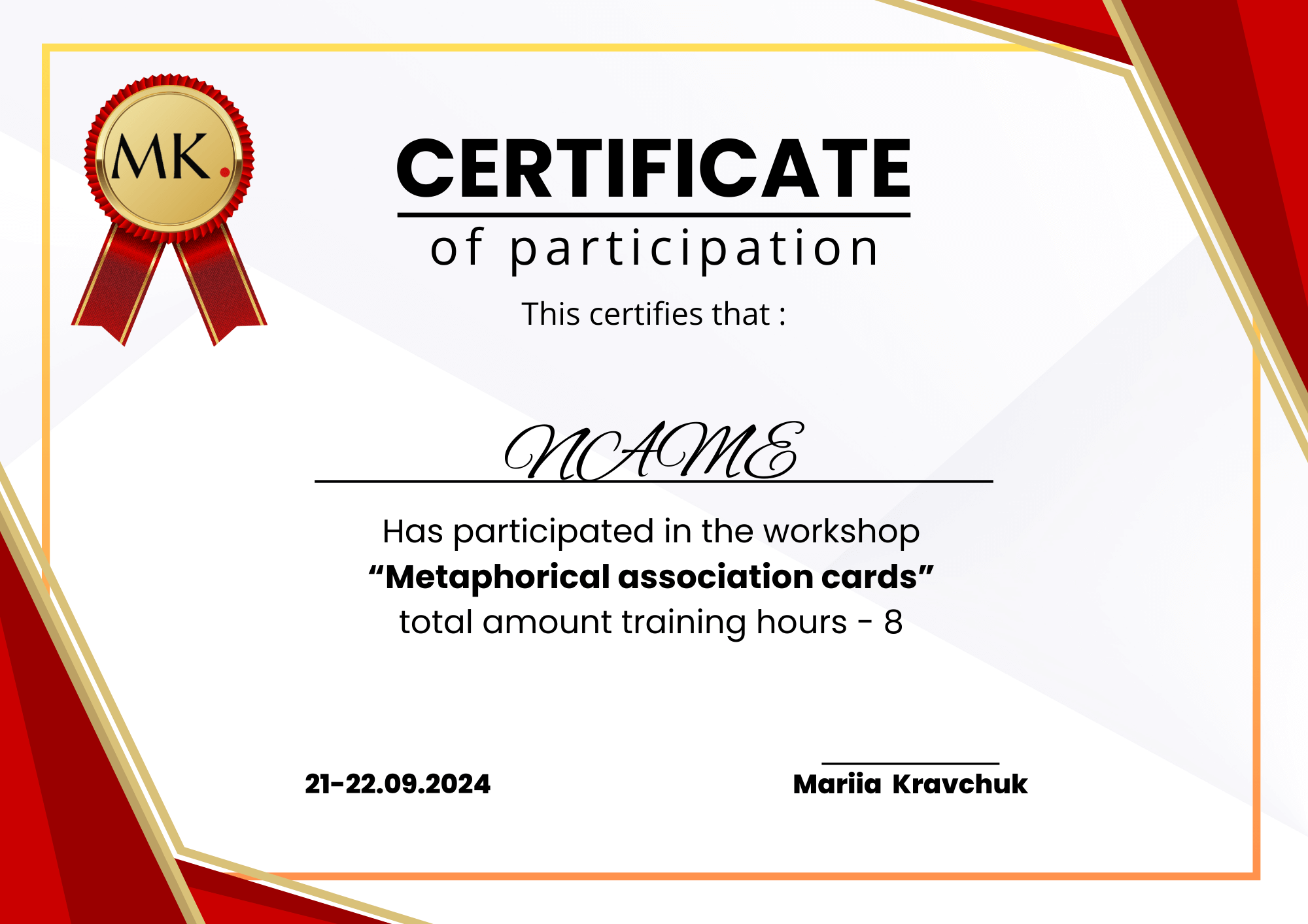 Після заповнення анкети зворотнього зв’язку, ми відправимо сертифікат